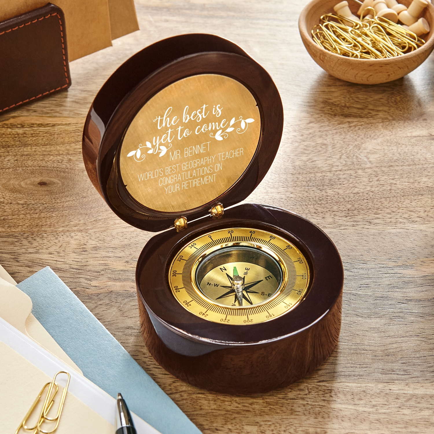 Comes with an engraved leatherette customer, ready to give and delight the person retiring soon (or already retired).